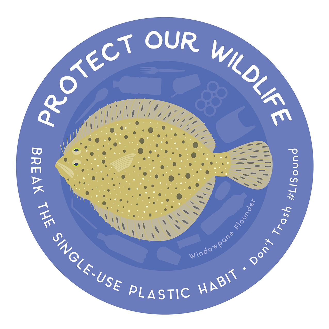 Check out this Windowpane Flounder featured on our Protect Our Wildlife: Break the Single-Use Plastic Habit sticker series. Did you know that the windowpane flounder is a flat fish that lives in muddy and sandy bottom habitats? Because they are thin with little muscle they are transparent when held up to the light; thus the name “windowpane.” Please, Protect these critters and the #LISound fishery. Break the Single-Use Plastic Habit and #DontTrashLISound.